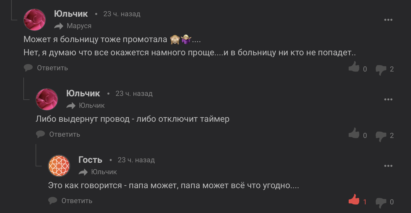Что в этот раз напишет НЕадекватная "юльчик"??? Опять нежданчик - не угадала, не перемотала, не досмотрела, какую хрень, пардон, НЕадекватная придумает? Ничего не угадала в который раз!!! Эй, в там, защитницы НЕадекватной, критическое мышление хотя б у вас есть? Исходя с того, что вы верите в бредни этой особи, то нет